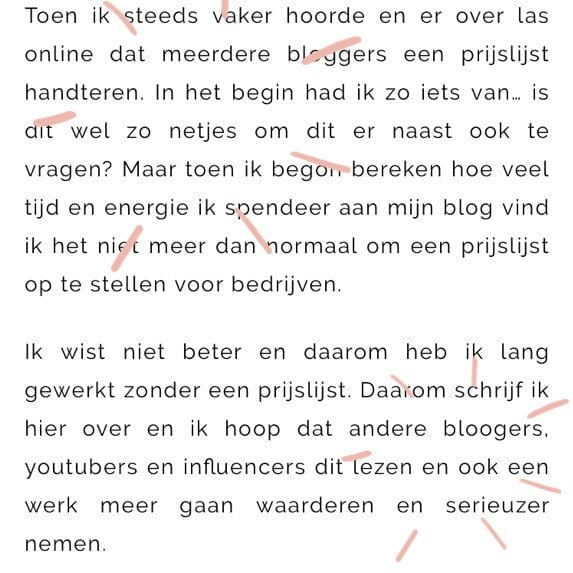 Laten we het nu hebben over de prijzen van een blogger. Want dat kopiëren van teksten kost deze blogger blijkbaar behoorlijk wat tijd. En wat vinden jullie van de link naar een blogpost over bloggers essentials? O-ri-gi-neel toch?