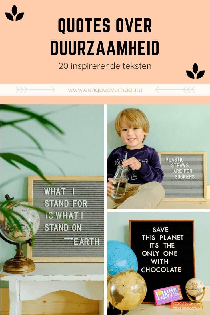 Natuurlijk mogen quotes over duurzaamheid niet aan mijn verzameling ontbreken. Deze gevatte spreuken zetten je vast en zeker aan het denken. Ben je op zoek naar teksten over duurzaamheid? Quotes over het milieu? Of inspirerende teksten voor je letterbord over zero waste? Kijk dan eens hier!