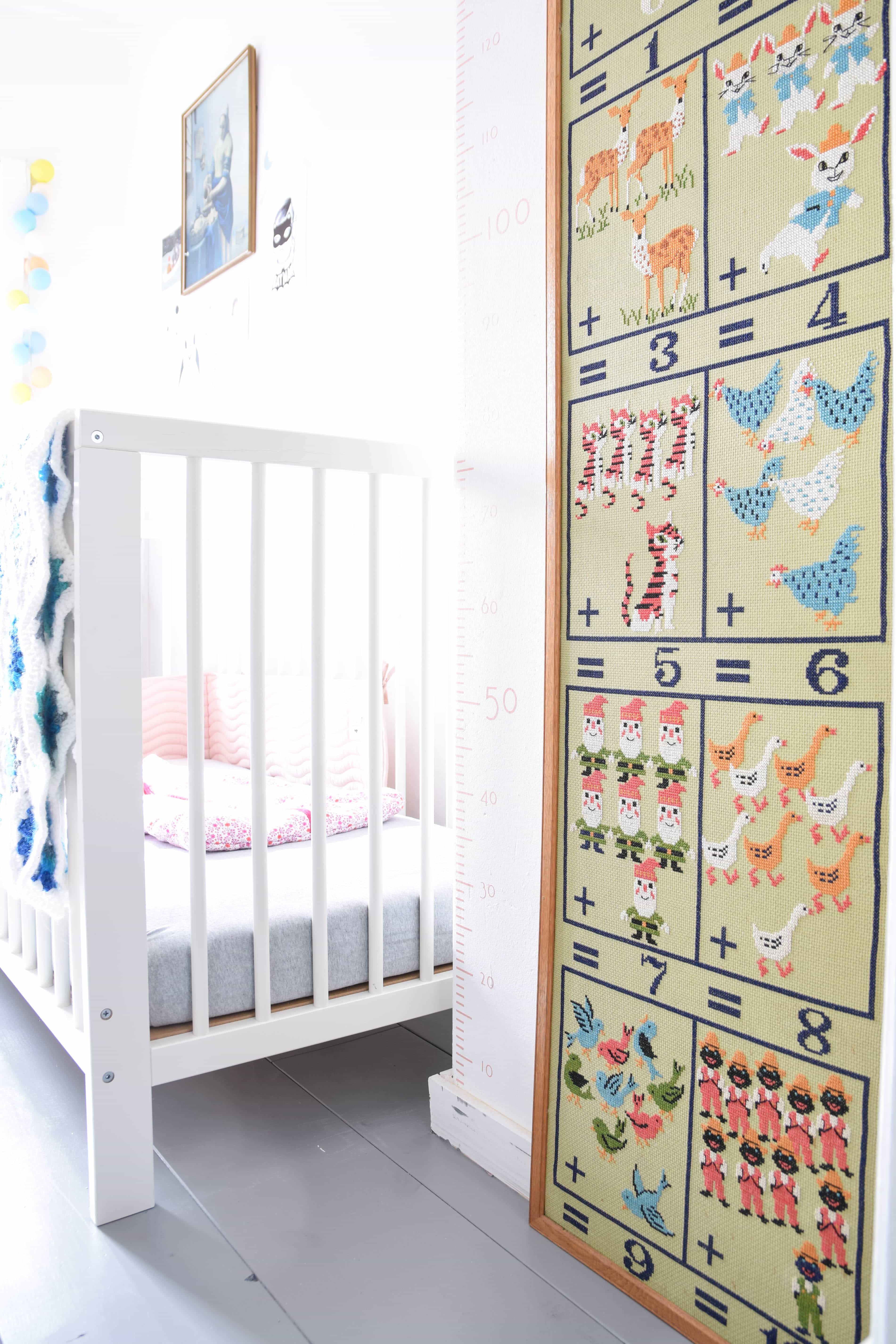 Kunnen jullie je nog de kinderkamer vol vintage finds van Tobe herinneren? Deze keer geef ik jullie een kijkje in de babykamer van zijn kleine zusje Bodil. Een kleine kinderkamer met muurstickers, door haar moeder zelf gemaakt!