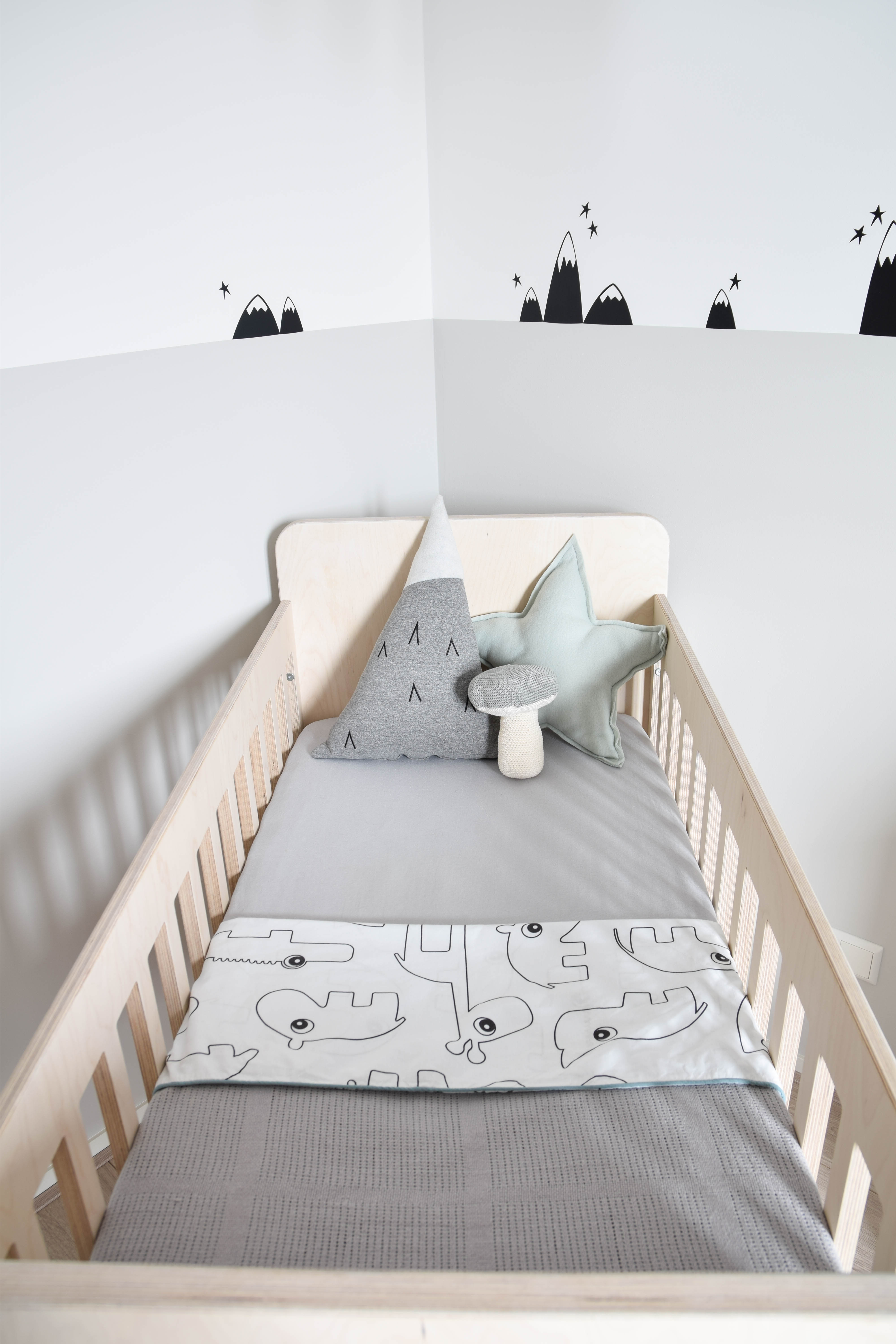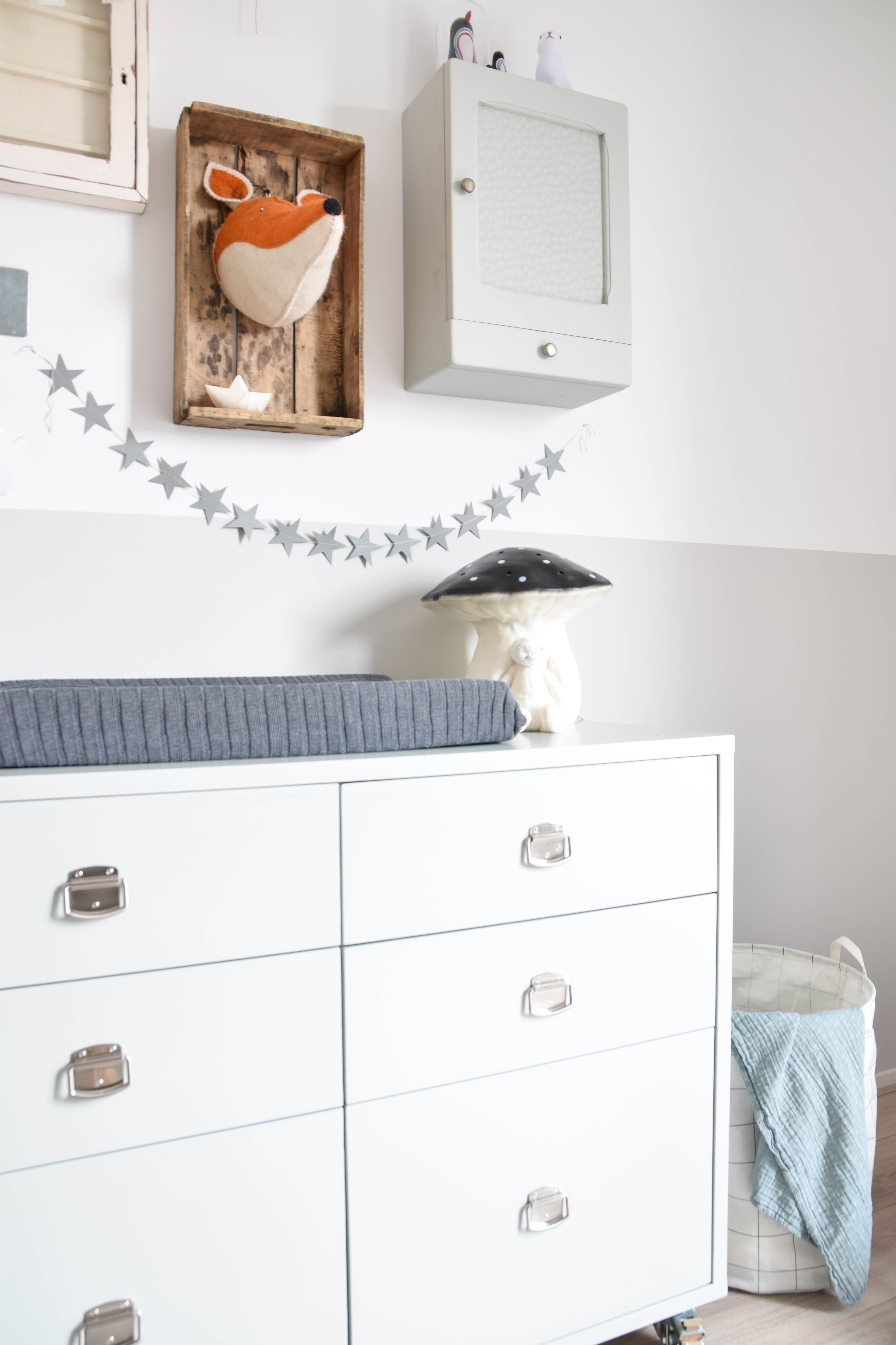 Op de muur heeft Elina een lambrisering geverfd met de kleur “Damp” van Histor; Elina’s favoriete grijstint. Deze kleur heeft ze ook gebruikt in de woonkamer en ze had nog een beetje over. Dit bleek net genoeg te zijn voor de kinderkamer!