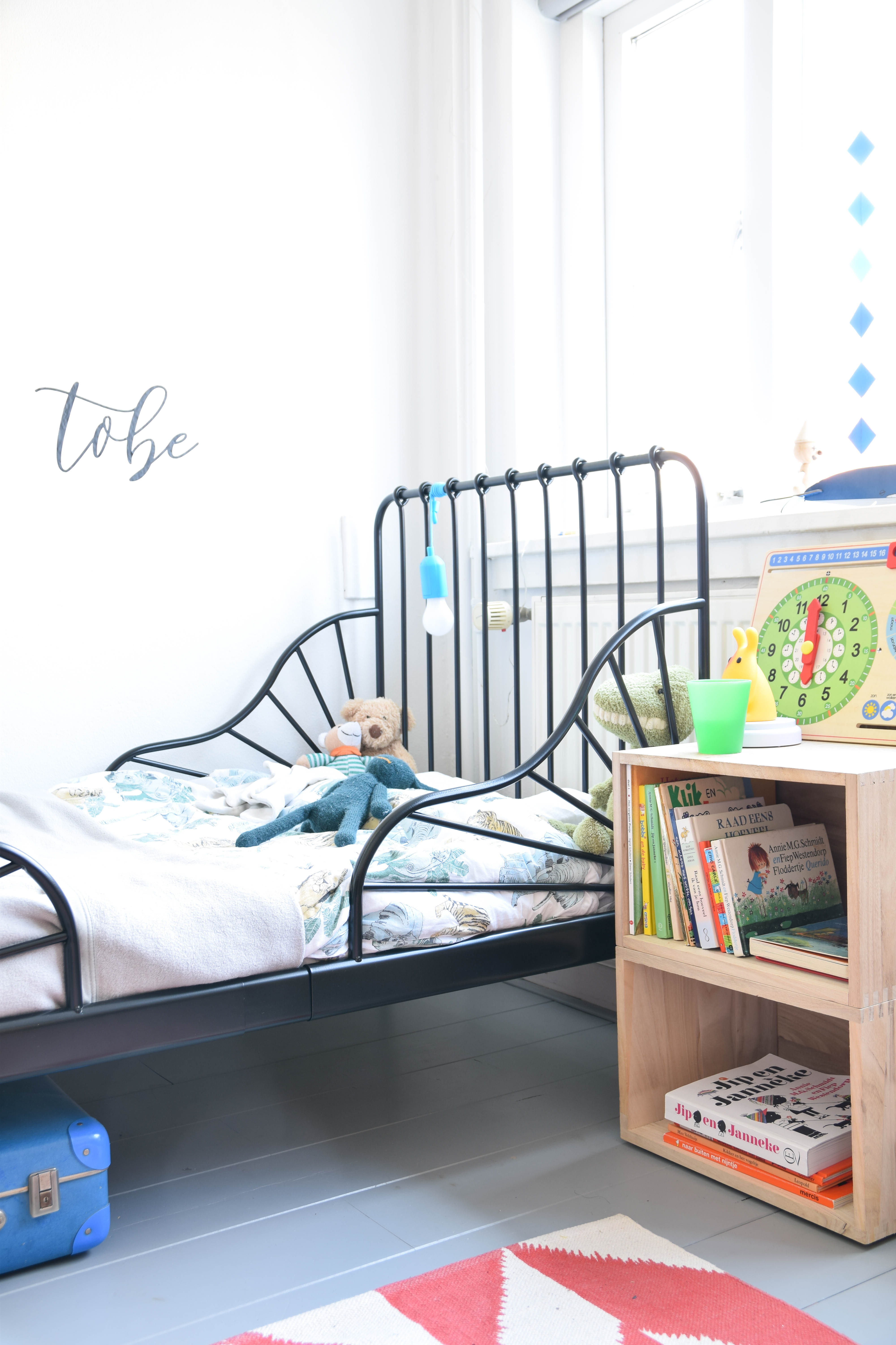 Het peuterbed van Tobe is een Ikea bed. Met de komst van dit bed was het even feest, want Tobe kon nu wel heel gemakkelijk naar de slaapkamer van zijn ouders lopen ’s ochtends. En dat deed hij dan ook vaak…en het liefst heel vroeg.