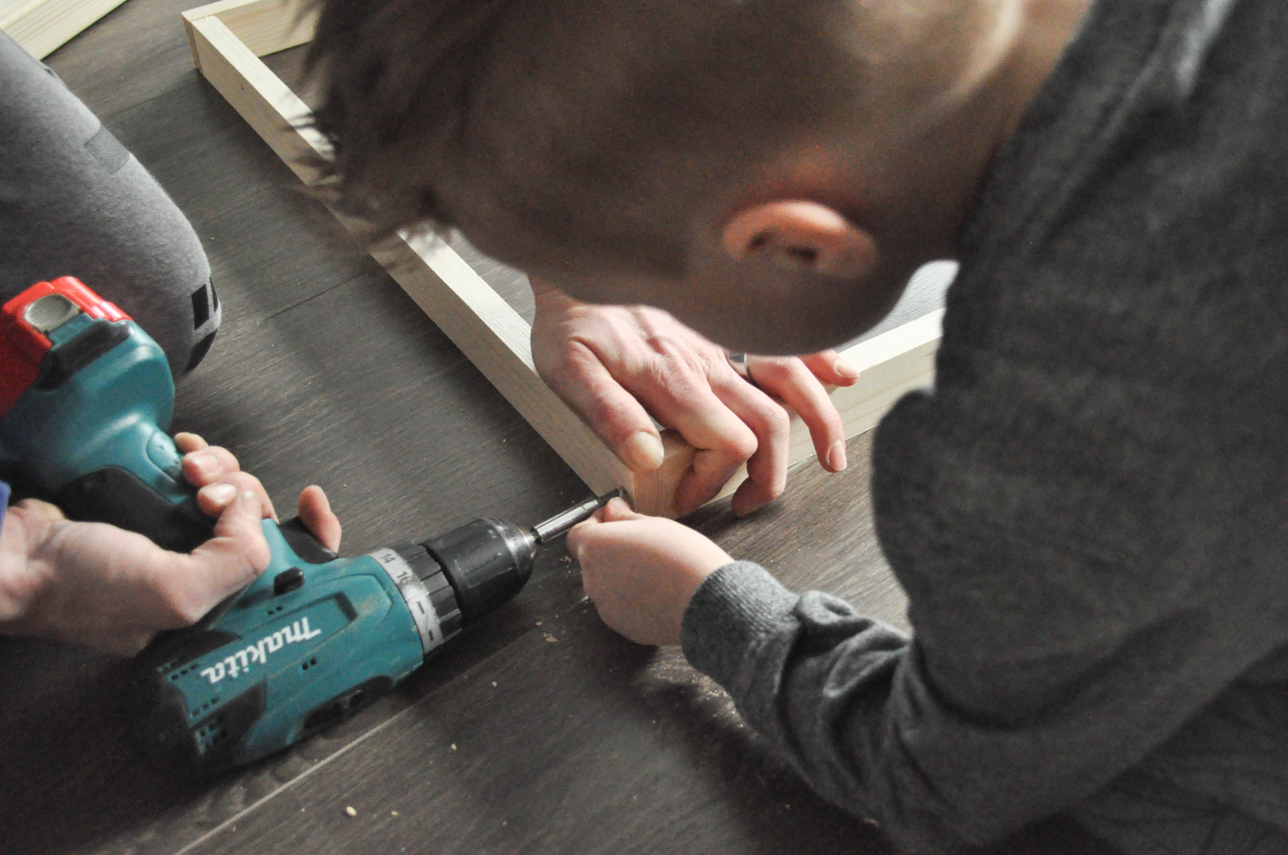 Voordat je het vierkant in elkaar gaat schroeven, boor dit dan wel even voor. Hierna kun je het boorgat nog verzinken zodat de schroeven mooi ‘verdwijnen’ in het hout.