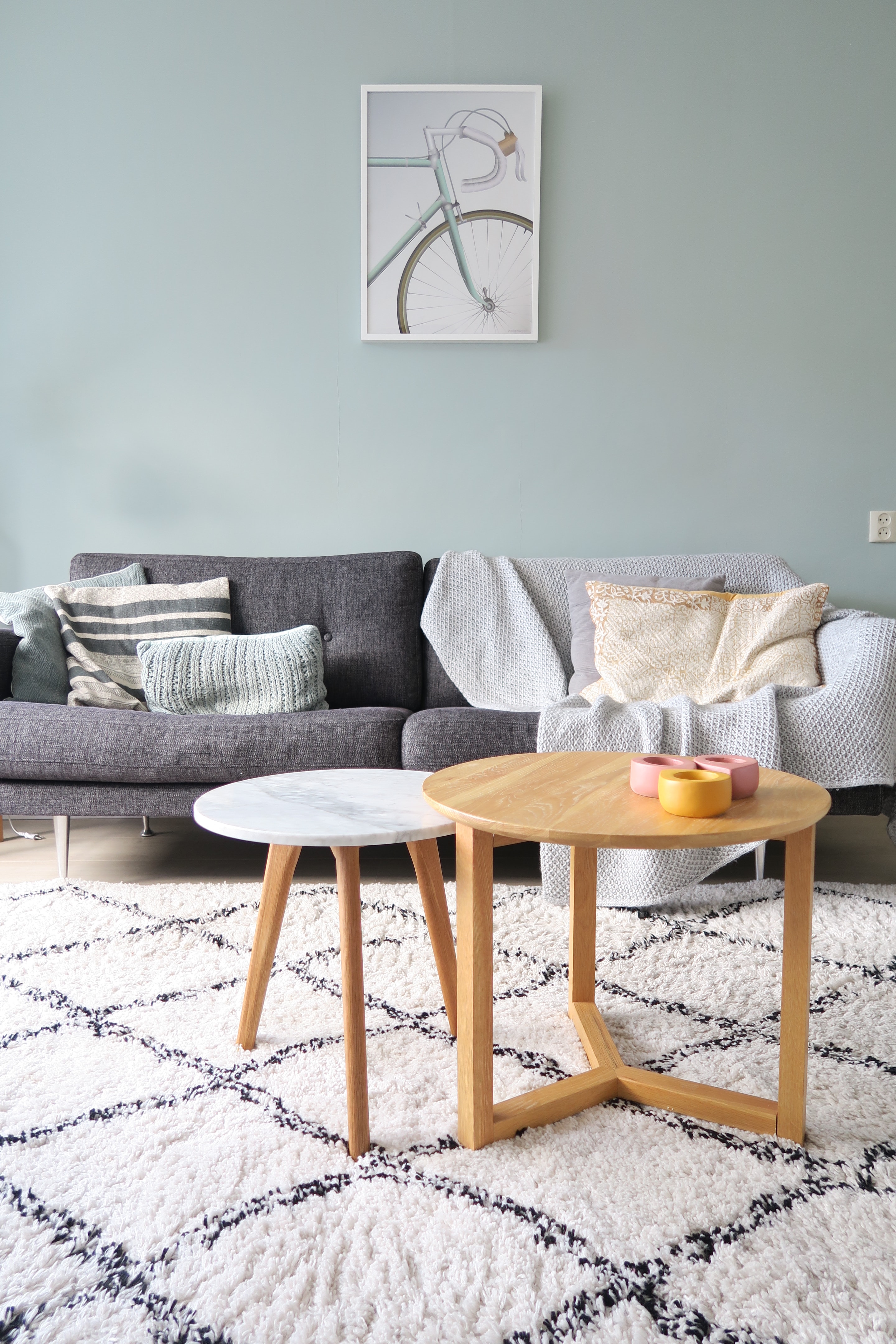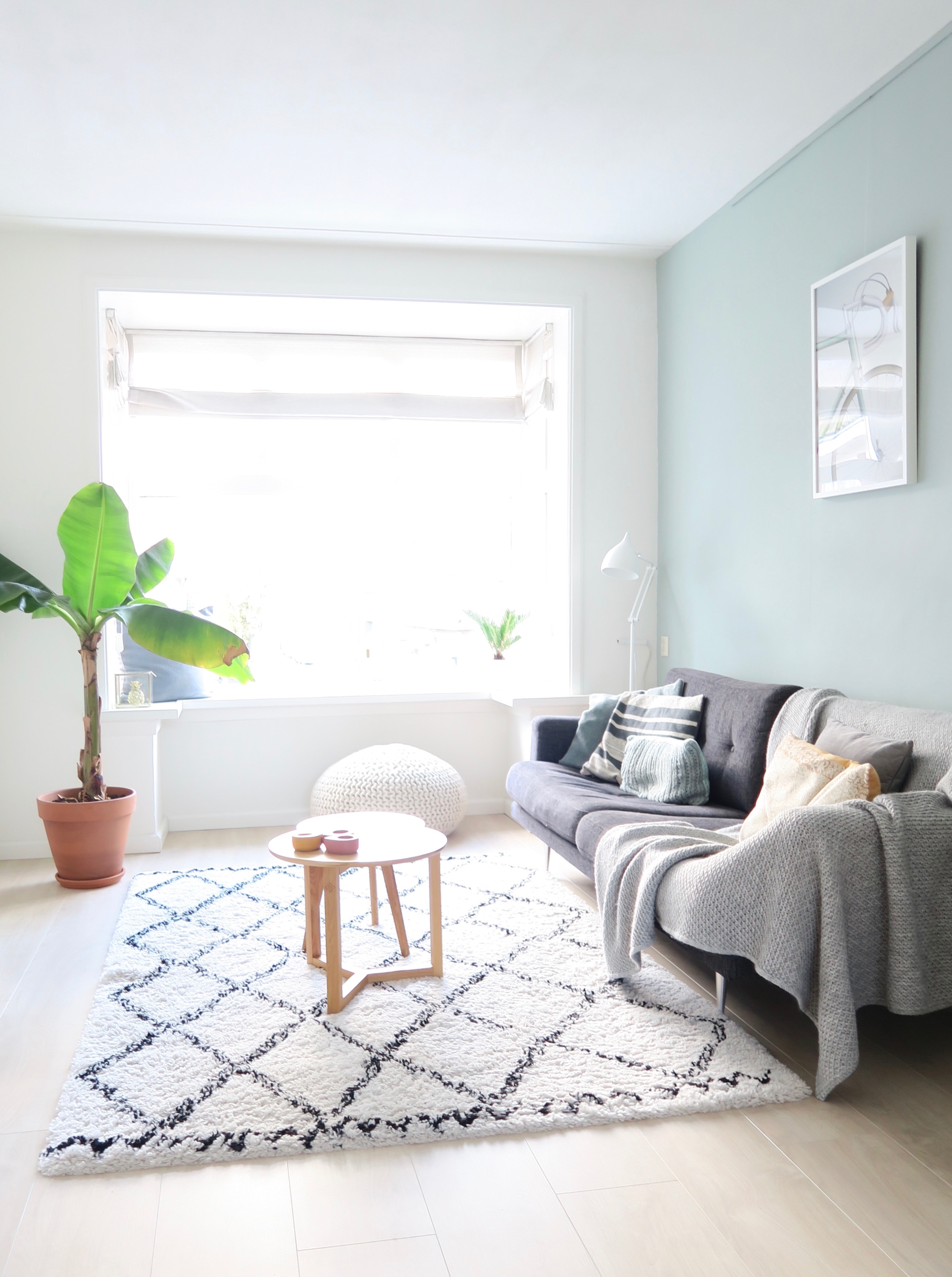 Bij de vraag of ze helemaal tevreden is over deze hoek, twijfelt ze. Naast af en toe twijfels over de kleur op de muur zou ze misschien ook wel een iets grotere bank willen. Ook wil ze graag nog een keer een ander kleed, want dit vloerkleed van Karwei ligt er inmiddels wel een flinke tijd. Maar die veranderdrang hoort er nu eenmaal bij als je interieurlover bent!