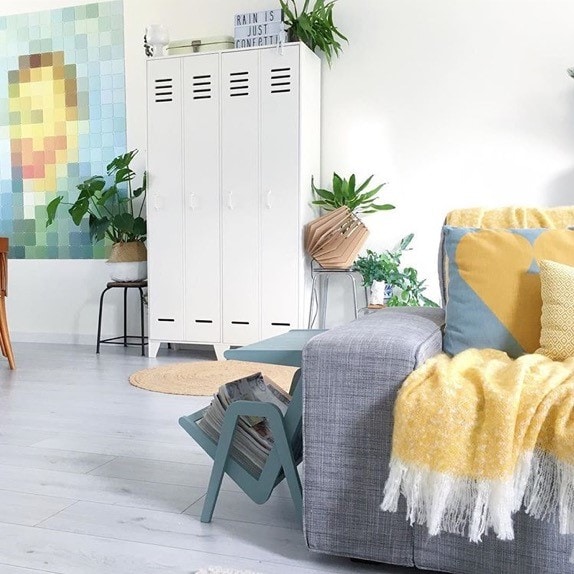 Wat zijn de kleuren in deze woonkamer mooi op elkaar afgestemd! De kleuren van de IXXI komen subtiel terug in details, zoals in de krantenbak, de kussens en het plaid. Ook Jenneke is fan van de Urban Jungle trend zo te zien. Op bijna iedere foto in haar feed is wel een beetje groen te ontdekken. Heel gaaf!