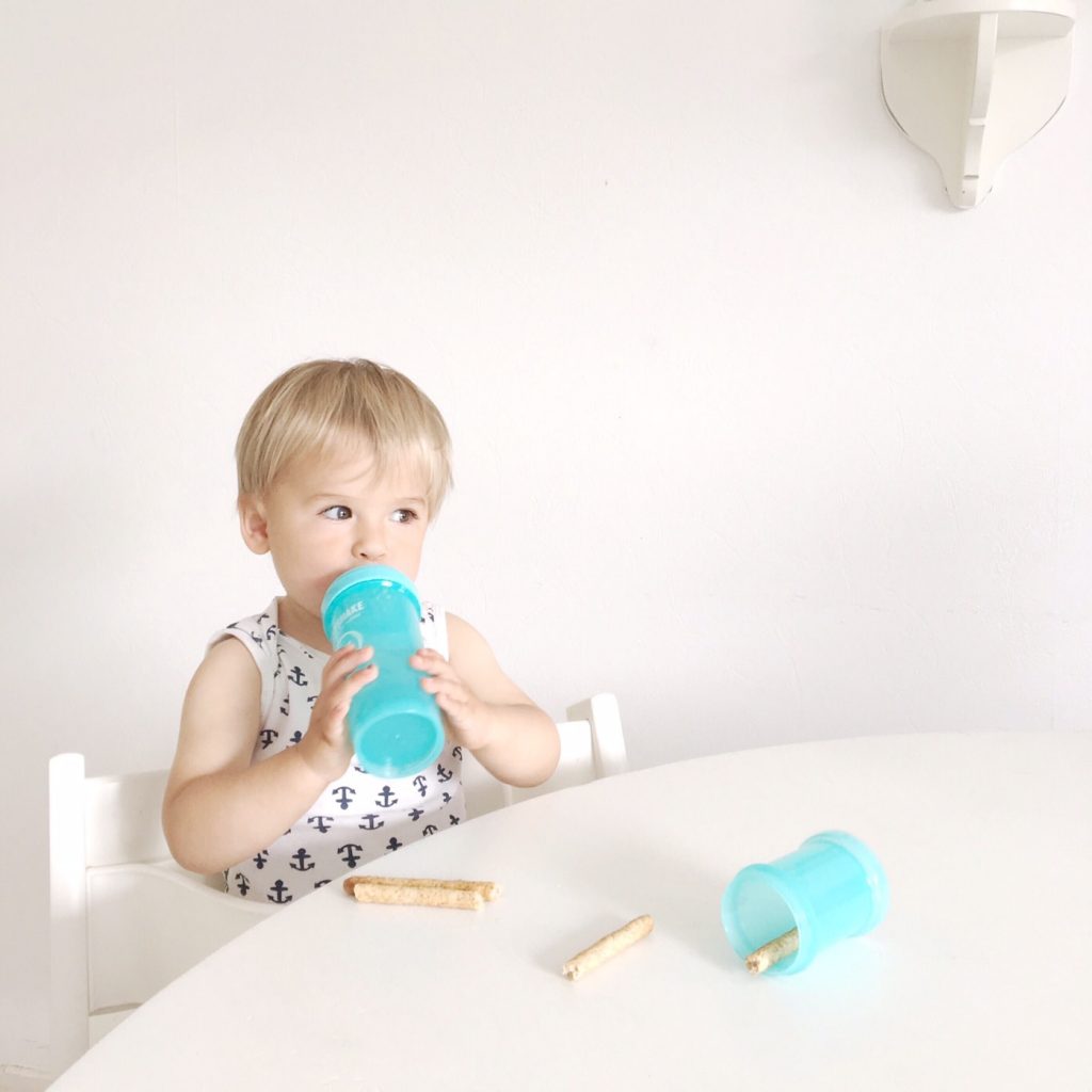 De Twistshake maakt ons dagelijks ritueel een stuk gemakkelijker. Eli is nu anderhalf, maar geniet nog iedere ochtend en avond van een fles groeimelk. Vooral als hij erg moe is hangt hij nog graag tegen me aan, terwijl ik een flesje voor hem klaarmaak. Jonge moeders kunnen het vast beamen; als je een kind hebt wordt je opeens heel handig met één hand. Ik denk soms aan een carrière switch naar het circus. Met al mijn multitasking terwijl ik een hangerig kind op de heup draag kan ik vast mijn eigen show beginnen!
