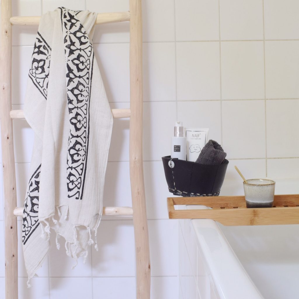 Ik heb een zwak voor hamamdoeken met mooie printjes. Daarom heb ik onlangs mezelf getrakteerd op deze mooie hamamdoek uit de webshop van Marieke Rusticus. De sierlijke zwarte print lijkt met de hand bedrukt en hangt nu te pronken in onze badkamer. Het is momenteel mijn favoriete hamam handdoek en ik kan niet wachten om hem mee te nemen naar het strand of het park.