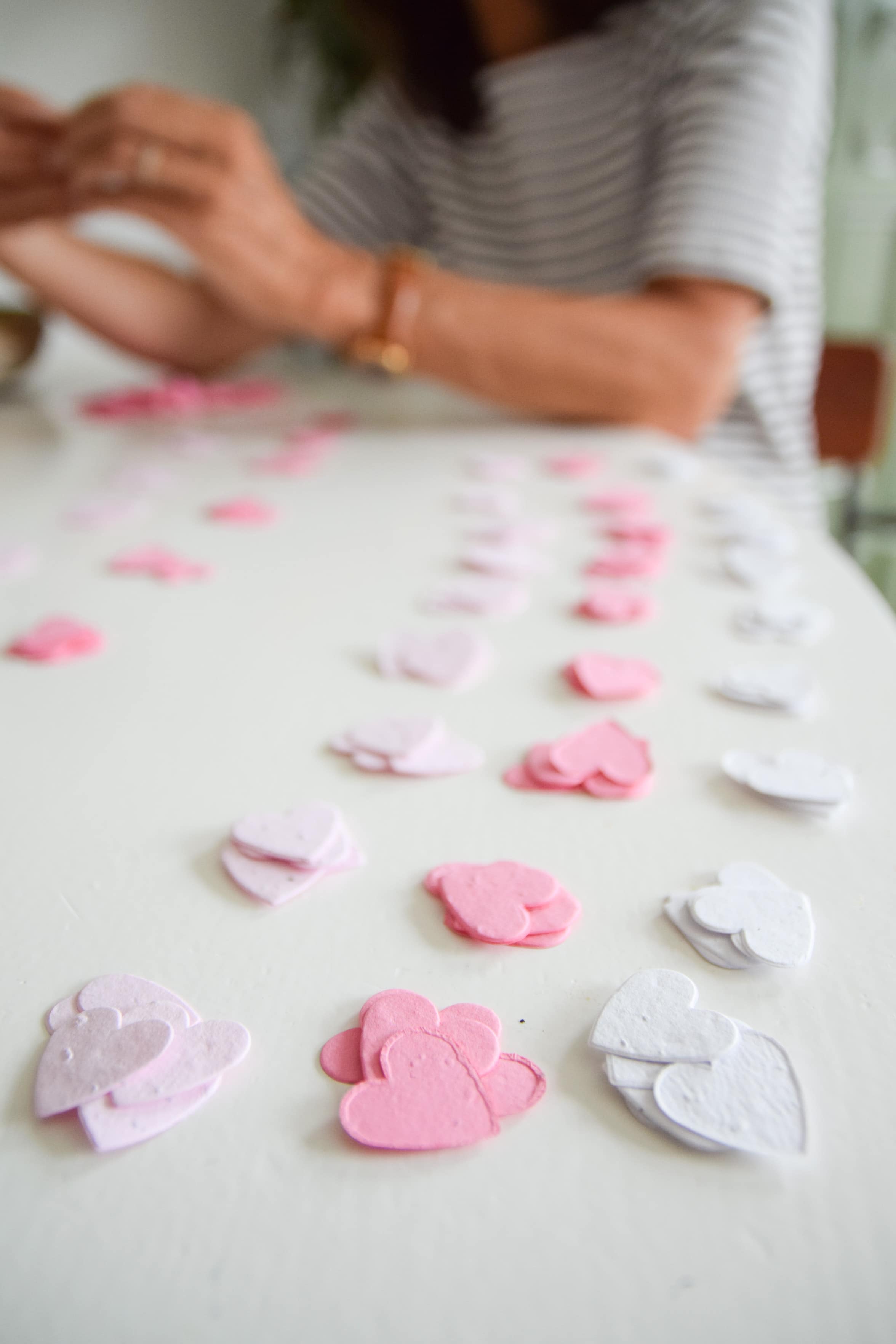 Ik wilde deze keer graag originele geboortesuiker voor de kraamvisite maken. Ik bedacht al gauw dat ik groeiconfetti wilde uitdelen en ik vond hele leuke bij Kudzu Eco webshop. Alhoewel ze speciale plantbare confetti voor geboortes in het assortiment hebben, koos ik toch voor de groeiconfetti in hartvorm. In deze confetti zitten bloemzaadjes verwerkt, waaruit mooie wilde bloemen groeien als je ze in de grond stopt. Symbolisch toch? Dit leek mij een prima alternatief voor geboortesuiker.