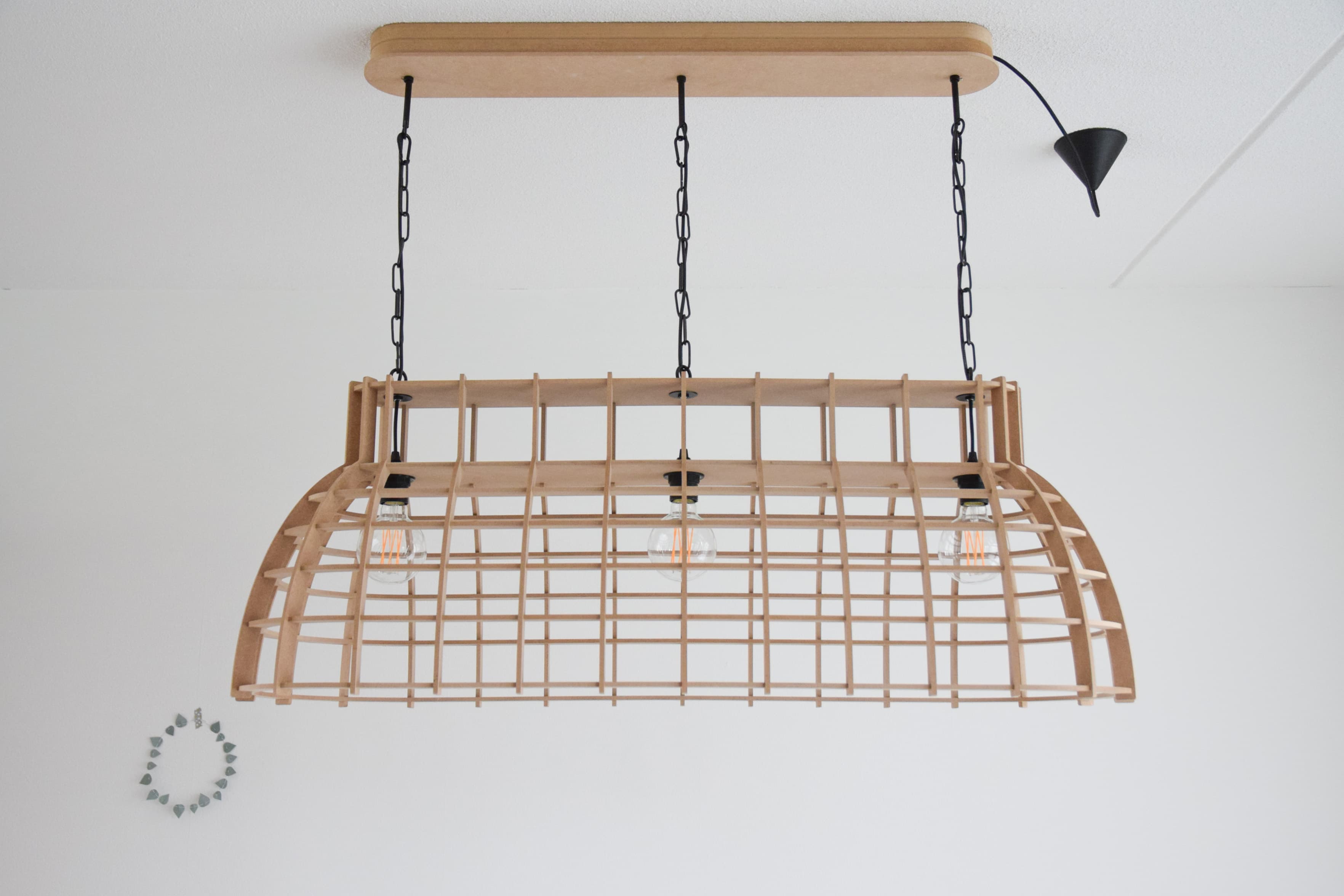 Op een dag zag ik een oproepje in een besloten Facebook groep voor interieurliefhebbers. Iemand verkocht lampen en tijdens de decembermaand gaven ze maar liefst 20% korting op alle lampen. Ik besloot een kijkje te nemen en meteen maakte mijn hart een sprongetje. Stoere lampen, groot en klein, werden handgemaakt in Rhenoy op een zorgboerderij. Mensen met een verstandelijke beperking creëren daar op de werkplaats de mooiste producten! Waaronder een toffe grote eettafellamp van MDF.