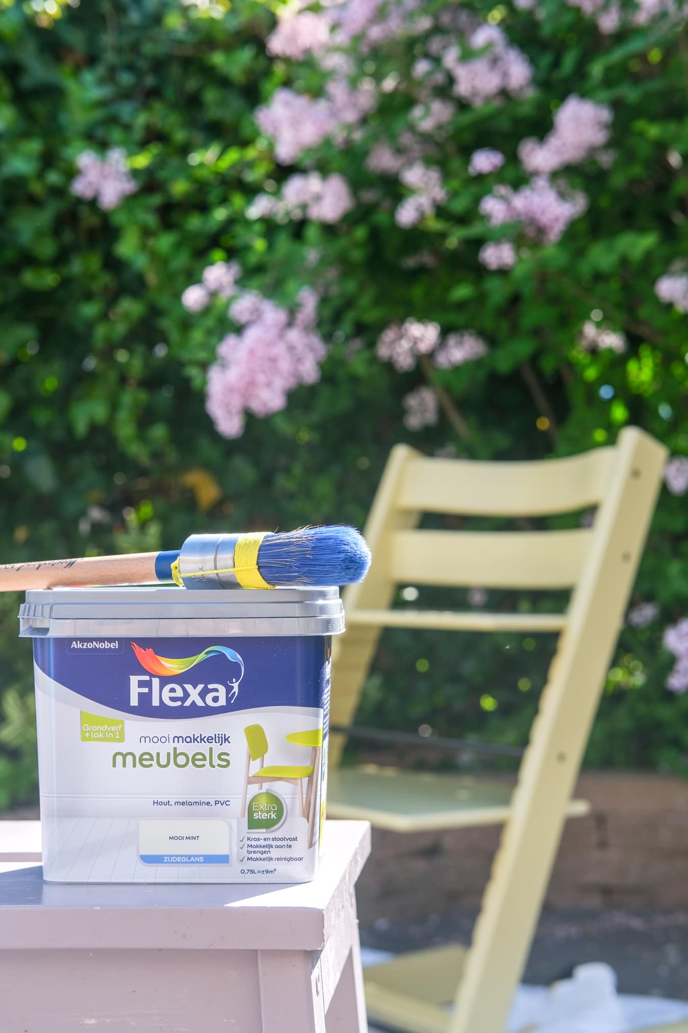 Op de Flexa Bloggersdag mocht ik al de nieuwste verf van Flexa proberen. Ik wist meteen dat dit de verf zou zijn waar ik mee aan de slag zou gaan om onze kinderstoelen te verven. De Tripp Trapp verven zou een fluit van een cent zijn met deze verf waarbij je niet eerst hoeft te gronden.