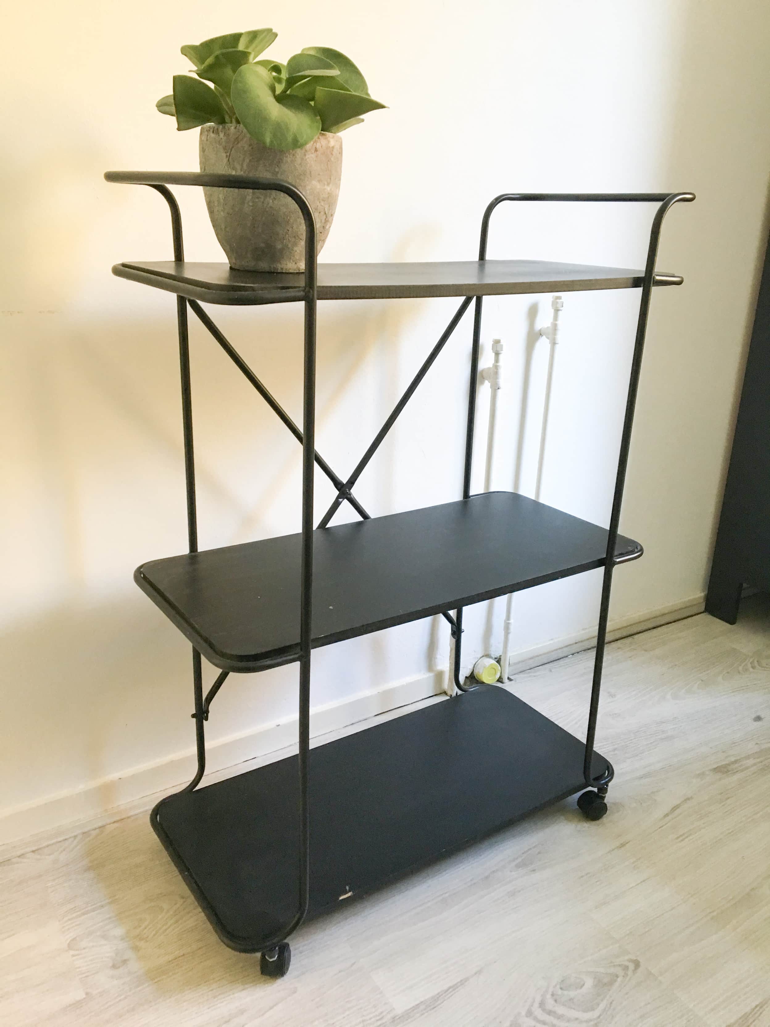 Stoere trolley met 3 kleine beschadigingen voor een tientje en een zware zwarte schaal van Ikea voor €4,-. (Update; beide verkocht)